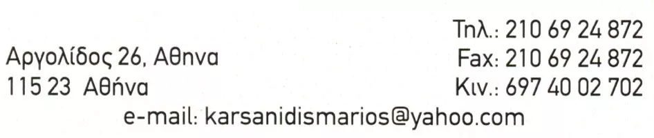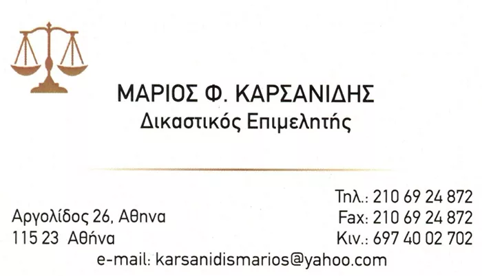 Το γραφείο του Δικαστικού Επιμελητή Καρσανίδη Μάριου, εξυπηρετεί όλο το νομό Αττικής και τα νησιά του Αργοσαρωνικού. Αναλαμβάνει επιδόσεις πάσης φύσεως δικογράφων και εξωδίκων, την εκτέλεση Αποφάσεων, Διαταγών και λοιπών εκτελεστών τίτλων. Τον έλεγχο ακίνητης περιουσίας σε Υποθηκοφυλακεία και Κτηματολογικά Γραφεία.