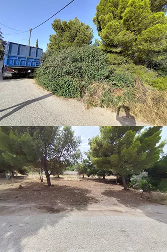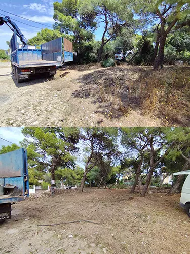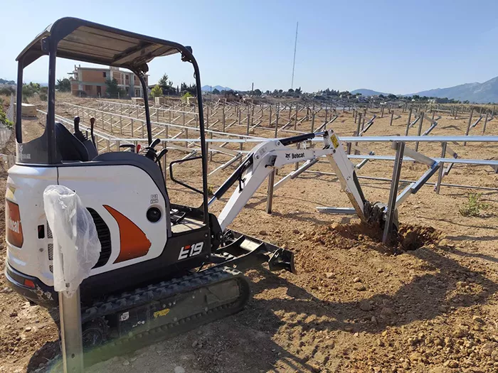 Χωματουργικές εργασίες με δυνατότητα επέμβασης σε στενούς χώρους. Επίσης, καταστροφή ριζών σε είδη διαμορφωμένους χώρους χωρίς να γίνει ζημιά περιμετρικά της ρίζας καθώς και κοπές, κλαδέματα δέντρων και καθαρισμό οικοπέδων και χωραφιών.