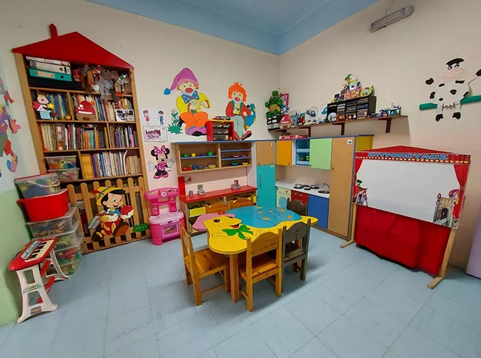 Οι δραστηριότητές μας: Ψυχαγωγικές και εκπαιδευτικές εκδρομές, επισκέψεις σε μουσεία, εκδηλώσεις, παρακολούθηση θεατρικών παραστάσεων. Οι παροχές μας: Ιατρική και οδοντιατρική παρακολούθηση, συνεργασία με παιδοψυχολόγο, ασφαλιστική κάλυψη, σχολικό, πλήρη διατροφή, ανάπαυση - ύπνος, συναντήσεις γονέων. Το πρόγραμμά μας: Παρουσίαση - ανάλυση θεμάτων, αισθητηριακές ασκήσεις, χειροτεχνικές δραστηριότητες, πηλός, προετοιμασία για το δημοτικό, αγγλικά, μουσική αγωγή, ρυθμική γυμναστική, κουκλοθέατρο, slides, δραματοποίηση, θεατρικό παιχνίδι, κολυμβητήριο, computer.