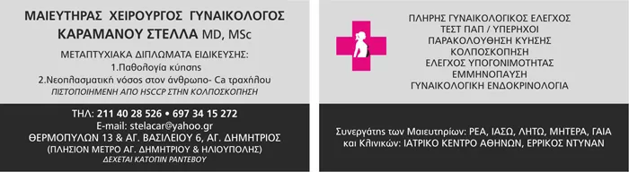 Επίσης είναι πιστοποιημένη από την Ελληνική Εταιρεία Κολποσκόπησης (HSCCP) για τη διενέργεια κολποσκοπήσεων.