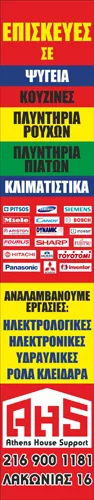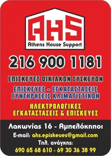 Το Athens House Support είναι μια επιχείρηση που δραστηριοποιείται στον χώρο της επισκευής οικιακών συσκευών. Διαθέτει έμπειρους τεχνικούς με προϋπηρεσία πολλών ετών και μπορεί να ανταποκριθεί άμεσα σε όλες τις ανάγκες επισκευών που μπορεί να προκύψουν σε ένα νοικοκυριό. Εξουσιοδοτημένο service Electrolux, Zanussi, AEG.
