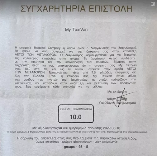 Εξαιρετική εμπειρία από την αρχή μέχρι το τέλος! Το taxi mini van ήταν πολυτελές, πεντακάθαρο και εξαιρετικά άνετο, ενώ ο οδηγός απόλυτα επαγγελματίας, ευγενικός και συνεπής. Η παραλαβή μας έγινε ακριβώς στην ώρα της και η διαδρομή ήταν ομαλή και ευχάριστη.