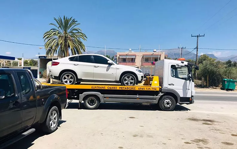 Η ELPITRANS - ΖΑΧΑΡΙΟΥΔΑΚΗΣ ΝΙΚΟΣ, εταιρεία με έδρα τις Μοίρες Ηρακλείου, εξειδικεύεται στης μεταφορές αυτοκινήτων & στην οδική βοήθεια σε όλη την ευρύτερη περιοχή της Μεσσαράς. Μπορούμε να αναλάβουμε μεταφορές γεωργικών & χωματουργικών μηχανημάτων έως 5 τόνων, ανέλκυση όλων των επιβατικών, μοτοσυκλετών & αγροτικών μηχανημάτων. Είμαστε στη διάθεσή σας, να σας εξυπηρετήσουμε άμεσα, όλο το 24ωρο.