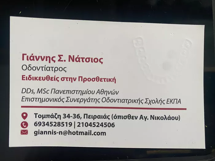 Ο Ιωάννης Νάτσιος είναι Χειρουργός Οδοντίατρος, με εξειδίκευση στην Προσθετολογία και πολυετή εμπειρία στην παροχή υψηλού επιπέδου οδοντιατρικής φροντίδας.