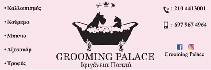 Το Grooming Palace προσφέρει υπηρεσίες καλλωπισμού στους πιστούς τετράποδους φίλους μας. Το κατάστημα διαχειρίζεται από επαγγελματία με 25ετή εμπειρία στον τομέα του Grooming. Η πολυετής πείρα της επιτρέπει να κατανοεί τις ανάγκες της κάθε ράτσας και κατοικιδίου ξεχωριστά, αλλά και τις προτιμήσεις του κάθε ιδιοκτήτη. Ο χώρος του καταστήματος βρίσκεται στην περιοχή της Νίκαιας και είναι σύγχρονα εξοπλισμένος, κατάλληλα για κάθε είδος περιποίησης. Η άρτια εξυπηρέτηση και περιποίηση του φίλου σας είναι σίγουρη!