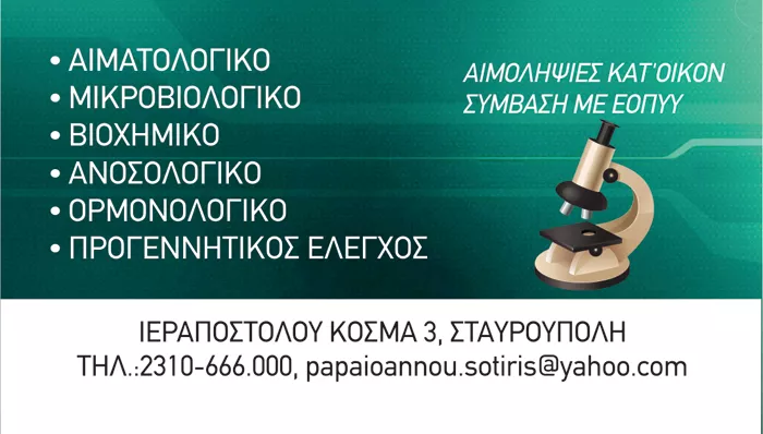 ΠΑΠΑΪΩΑΝΝΟΥ ΣΩΤΗΡΙΟΣ – ΙΩΑΝΝΗΣ  Μικροβιολογικά Εργαστήρια Σταυρούπολη ΠΑΠΑΪΩΑΝΝΟΥ ΣΩΤΗΡΙΟΣ – ΙΩΑΝΝΗΣ  Μικροβιολογικά Εργαστήρια Σταυρούπολη