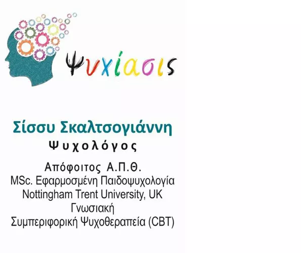 Ονομάζομαι Σίσσυ Σκαλτσογιάννη και είμαι ψυχολόγος. Αποφοίτησα από το Αριστοτέλειο Πανεπιστήμιο Θεσσαλονίκης. Συνέχισα τις μεταπτυχιακές μου σπουδές στην Εφαρμοσμένη Παιδοψυχολογία (Nottingham Trent University, UK).Ολοκλήρωσα την πρακτική μου άσκηση στο Ιπποκράτειο Νοσοκομείο Θεσσαλονίκης (Γ’ Παιδιατρική Κλινική, Εργαστήριο Αναπτυξιακής Παιδιατρικής). Έχω επίσης εργαστεί ως συμβασιούχος ψυχολόγος στο 2/θέσιο Ειδικό Πειραματικό Δημοτικό σχολείο Ιωαννίνων. Στη συνέχεια εργάστηκα στη λογοθεραπεύτρια Ευαγγελία Σούπη όπου συμμετείχα στην αξιολόγηση και παρέμβαση περιστατικών μαθησιακών δυσκολιών, αναπτυξιακών διαταραχών και διαταραχών του λόγου καθώς επίσης παρείχα συμβουλευτική οικογένειας, σχολές γονέων και ομαδικά θεραπευτικά προγράμματα μέσω παιγνιοθεραπείας. Αυτήν τη στιγμή διατηρώ το δικό μου χώρο θεραπείας - Ψυχίασις καθώς επίσης πραγματοποιώ εξωτερική συνεργασία με την εργοθεραπεύτρια Σπυριδούλα Κυπριτζόγλου όπου διενεργώ