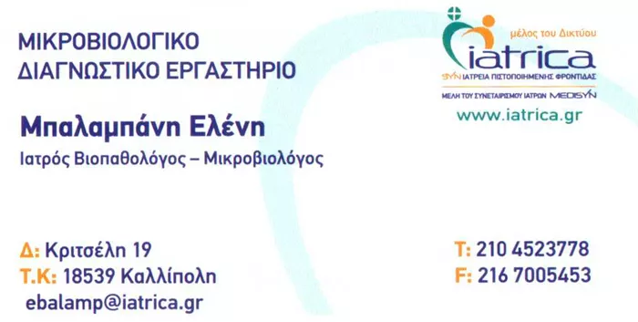 Το Ιατρείο είναι μέλος του δικτύου Iatrica και εφαρμόζει σύστημα διαχείρισης ποιότητας σύμφωνα με το πρότυπο ISO 9001:2008 πιστοποιημένο από τον φορέα πιστοποίησης EQA HELLAS A.E. με αριθμό πιστοποιητικού 3644.36/10 και χρησιμοποιεί αναλυτές τελευταίας τεχνολογίας.