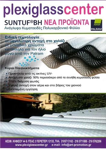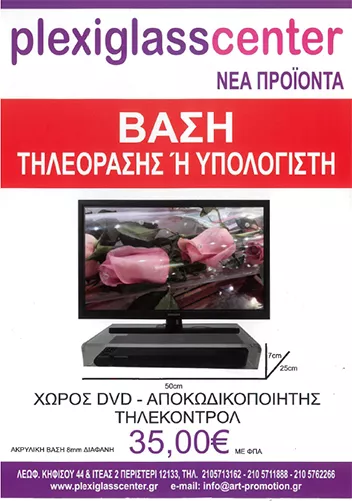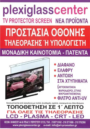 Εδώ θα βρείτε: plexiglass σε όλες τις μορφές που υπάρχουν. Σε φύλλα, σε διάφορες διαστάσεις, (κόβονται κατά παραγγελία) και χυτό Plexiglass. Διαμορφώνουμε, χαράσσουμε, και εκτυπώνουμε το πλεξιγκλάς επίσης δημιουργούμε διαφημιστικά αντικείμενα. Το Plexiglass είναι ένα υλικό, που έχει χιλιάδες εφαρμογές στην καθημερινότητά μας. Έχει ασύγκριτα πλεονεκτήματα σε σχέση με το γυαλί. Είναι ελαστικό, διαμορφώνεται εύκολα, χαράζεται εύκολα, είναι ελαφρύτερο από γυαλί, κόβεται και χρωματίζεται εύκολα, είναι οικονομικό, έχει μεγαλύτερη αντοχή σε σχέση με το τζάμι, σπάζει δύσκολα, είναι διάφανο με μεγαλύτερη διαύγεια και καθαρότητα από το γυαλί, σε πάχος 10 χιλιοστά είναι αλεξίσφαιρο και πολλά άλλα πλεονεκτήματα.