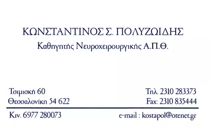 ΠΟΛΥΖΩΙΔΗΣ Σ. ΚΩΝΣΤΑΝΤΙΝΟΣ Νευροχειρουργοί Θεσσαλονίκη ΠΟΛΥΖΩΙΔΗΣ Σ. ΚΩΝΣΤΑΝΤΙΝΟΣ Νευροχειρουργοί Θεσσαλονίκη