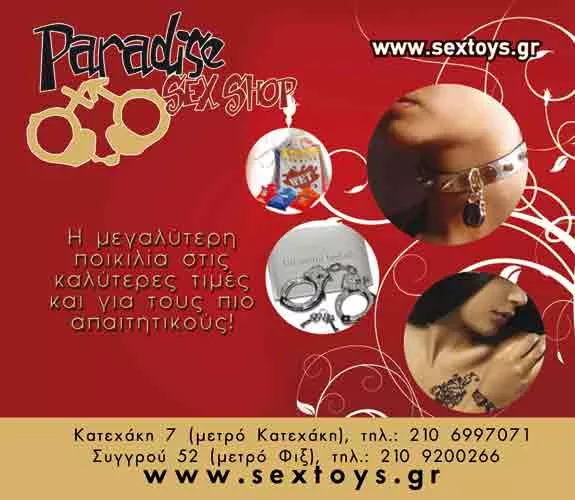 Η επί 13 χρόνια εμπειρία μας στον χώρο των sexshop, η καθημερινή ενημέρωσή μας για τα καινούργια προϊόντα που κυκλοφορούν παγκοσμίως, η γνώση των προϊόντων μας από τεχνικής απόψεως για να επιλέγουμε τα καλύτερα για εσάς και η ικανοποιημένη σταθερή μας πελατεία μας κρατάει στην κορυφή της επιλογή σας. Προσφέρουμε για εσάς τη μεγαλύτερη ποικιλία στις καλύτερες τιμές σε Ρούχα, Εσώρουχα, Λιπαντικά, Αιθέρια έλαια, Sextoys S/M αξεσουάρ Body Art, Αστεία δώρα και πολλά άλλα... Βρείτε σε μας την καλύτερη επιλογή και γνωρίστε τον παράδεισο της απόλαυσης. Για online παραγγελίες στο www.sextoys.gr. Υποκατάστημα: Συγγρού 52 (μετρό ΦΙΞ)