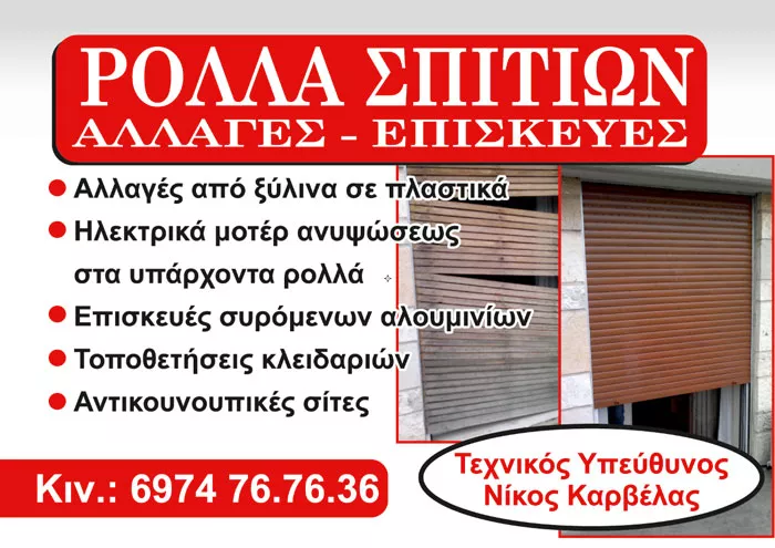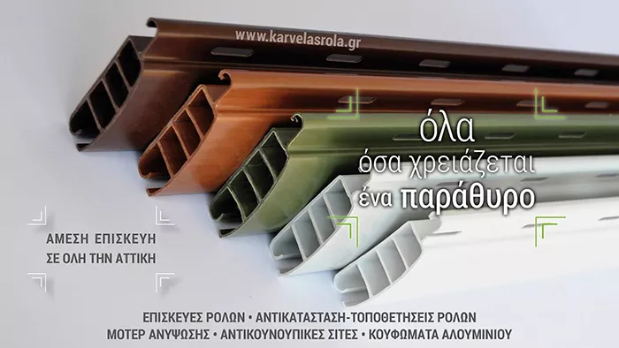 Στην εταιρεία Karvelas Rola, υπό την αιγίδα του Νίκου Καρβέλα, ασχολούμαστε με την κατασκευή, τοποθέτηση και επισκευή ξύλινων ρολών ή από αλουμίνιο, κουφωμάτων αλουμινίου, με την κατασκευή και τοποθέτηση σιτών, πτυσσόμενων κάγκελων και, γενικότερα, με οτιδήποτε χρειάζεται ένα παράθυρο, από το 1991! Τοποθετώ και κατασκευάζω ρολά σε κατοικίες, αλλά και σε γραφεία - επιχειρήσεις.