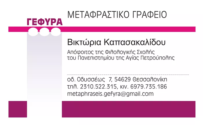 Лучшее бюро переводов, с которым я когда-либо сотрудничала! Уже три года делаю все свои переводы только у Виктории Капасакалиду! Не было не одного случая, когда у меня не приняли эти переводы в официальных инстанциях разных стран: Греция, Россия, Чехия, Англия. Высокое качество, ответственность и невероятная скорость выполнения работы!