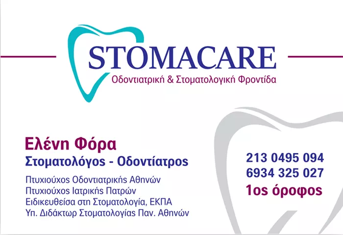Η ομάδα μας αποτελείται από δύο καταξιωμένους κλινικούς επιστήμονες, την Ειδικό Στοματολόγο, Ελένη Φόρα και τον συνεργάτη της Σωτήρη Σωτηρόπουλο, Χειρουργό Οδοντίατρο. Στο χώρο μας προσφέρονται υπηρεσίες υψηλού επιπέδου, καλύπτοντας όλο το φάσμα της στοματολογίας και της σύγχρονης οδοντιατρικής. Η Ελένη Φόρα είναι Ειδικός Στοματολόγος - Χειρουργός Οδοντίατρος και διατηρεί ιδιωτικά ιατρεία στο Γέρακα Αττικής και το Μεσολόγγι. Είναι Υποψήφια Διδάκτωρ της Οδοντιατρικής Σχολής ΕΚΠΑ και κάτοχος Μεταπτυχιακού διπλώματος στη Στοματολογία με βαθμό Άριστα. Έχει αποφοιτήσει από την Οδοντιατρική Σχολή Αθηνών και έχει μετεκπαιδευτεί στις «Βασικές αρχές του καρκίνου, παθογενετικούς μηχανισμούς και νεότερες θεραπευτικές προσεγγίσεις» στο ΕΚΠΑ. Έχει επίσης λάβει Πτυχίο Ιατρικής από το Πανεπιστήμιο Πατρών, όπου έχει επιπρόσθετα εκπαιδευτεί στις "Εφαρμογές της Τεχνητής Νοημοσύνης στην Υγεία". Έχει σημαντική κλινική εμπειρία από μεγάλα νοσοκομεία της Αθήνας όπως ο «Ευαγγελισμός», το Γ.Ν.Α. «Λαϊκό» και το Νοσοκομείο «Α. Συγγρός», όπου εκπαιδεύτηκε σε πολύπλοκα περιστατικά αυτοάνοσων, πομφολυγωδών, λοιμωδών και φλεγμονωδών παθήσεων του στόματος. Έχει τιμηθεί με υποτροφίες του Ιδρύματος Ωνάση και του Ιδρύματος Κρατικών Υποτροφιών