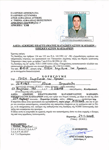 Η επιχείρησή μας ξεκίνησε τις δραστηριότητές της το 1990 με στόχο την εξυπηρέτηση του πελάτη σε όλα τα επίπεδα, από το πιο απλό κλειδί και κλειδαριά μέχρι τα πιο σύγχρονα συστήματα ασφαλείας όπως ηλεκτρονικά κλειδιά και κάρτες, κλειδαριές ηλεκτρικές - ηλεκτρονικές - βιομετρικές, συστήματα master-passepartout, access control, immobilizer αυτοκινήτων, remote control κ.λπ. Διαθέτουμε τον πιο σύγχρονο μηχανικό και ηλεκτρονικό εξοπλισμό για τη σωστή κατασκευή - λειτουργία και τεχνική υποστήριξη όλων αυτών. Μέλος συνδέσμου αναγνωρισμένων κλειθροποιών (ΣΑΕΚ).