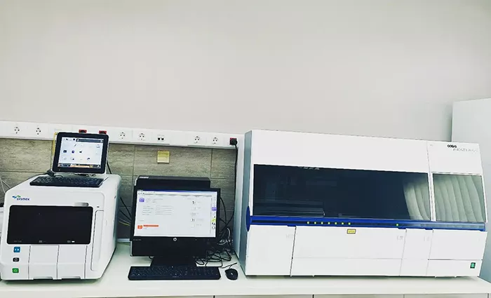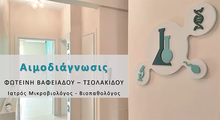 Το εργαστήριο Αιμοδιάγνωσις είναι ένα υπερσύγχρονο εργαστήριο εξοπλισμένο με τελευταίας τεχνολογίας αναλυτές, των εταιρειών Roche Diagnostics και Siemens, που διαθέτουν τις πλέον σύγχρονες μεθόδους υψηλής ευαισθησίας, ειδικότητας, επαναληψιμότητας και ακρίβειας. Πραγματοποιείται αυστηρός καθημερινός εσωτερικός ποιοτικός έλεγχος των προηγμένης τεχνολογίας μηχανημάτων και μηνιαίος εξωτερικός ποιοτικός έλεγχος των αποτελεσμάτων από διεθνώς αναγνωρισμένους φορείς ΕΣΕΑΠ. Όλοι οι αναλυτές του εργαστηρίου επικοινωνούν αμφίδρομα με το πρόγραμμα LIS για πλήρη αυτοματοποίηση της διεκπεραίωσης των εξετάσεων και εκμηδενισμό της πιθανότητας λάθους σε προαναλυτικό και μεταναλυτικό στάδιο. Υπεύθυνη του εργαστηρίου είναι η ιατρός Φωτεινή Βαφειάδου-Τσολακίδου, Μικροβιολόγος – Βιοπαθολόγος, απόφοιτος του τμήματος της Ιατρικής Σχολής του Πανεπιστημίου Πατρών με μεταπτυχιακή εξειδίκευση (MSc) στην εργαστηριακή διερεύνηση της γυναικείας και ανδρικής υπογονιμότητας. Το εργαστήριο είναι συμβεβλημένο με τα ταμεία ΕΟΠΥΥ, ΥΕΘΑ (Στρατός Ξηράς, Πολεμικό Ναυτικό, Πολεμική Αεροπορία), το Λιμενικό Σώμα και το Ταμείο της Εθνικής Τράπεζας (ΤΥΠΕΤ).