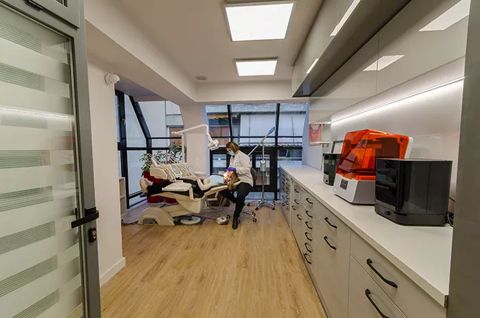 Το ιατρείο έχει σαφέστατο προσανατολίσμο στην τελευταίας τεχνολογίας Ψηφιακή Οδοντιατρική. Ο ψηφιακός ενδοστοματικός σαρωτής (intraoral scanner) επιτρέπει την τριδιαστατη απεικόνιση του στόματος και τον λεπτομερή ψηφιακό σχεδιασμό του χαμόγελου (Smile Design), για το καλύτερο αισθητικό αποτέλεσμα. Και όσο για τις προσωρινές αποκατάστασεις, υπάρχει 3D PRINTER, για την άμεση κατασκευή τους (Teeth in One Day). Η νοσοκομειακού τύπου συσκευή φυγοκέντρισης του αίματος για εφαρμογές PRP-PRF δίνει τη δυνατότητα λήψης πολύ πιο πλούσιου υλικού στοιχείων που επιταχύνουν την επούλωση και την ανάπλαση ιστών σε χειρουργημένες περιοχές. Τα πλεονεκτήματα αυτής της τεχνικής είναι ακόμη περισσοτερα και θα χαρούμε να σας τα αναλύσουμε από κοντά. Στην επιτυχημένη οστεοενσωμάτωση και στην ταχύτερη αποκατάσταση των εμφυτευμάτων συμβάλλει η συσκευή Osstell, η οποία μας δίνει αξιόπιστες μετρήσεις της σταθερότητάς τους την ώρα της τοποθέτησής τους, αλλά, αν χρειαστεί, και στα επόμενα στάδια. Βαδίζουμε δηλαδή με σιγουριά.