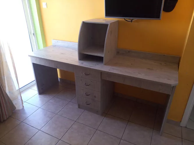Το κατάστημά μας αναλαμβάνει παντός είδους κατασκευές: κουζίνες, ντουλάπες, πόρτες εσωτερικές και ασφαλείας, ειδικές κατασκευές, έπιπλα μπάνιου, παιδικά δωμάτια, κεραμοσκεπές, αναπαλαιώσεις επίπλων και μερεμέτια. Ερχόμαστε στον χώρο σας και χωρίς κανένα κόστος κάνουμε την επιμέτρηση, τον σχεδιασμό και την κοστολόγηση των αντικειμένων που θέλετε. Τα υλικά που κατασκευάζουμε είναι πρώτης ποιότητας και όλων των ειδών όπως μελαμίνη, βακελίτης, mdf και μασίφ ξυλεία. Οι κουζίνες που κατασκευάζουμε είναι από μελαμίνη, βακελίτη, λακαριστές, λουστραριστές, μασίφ και ημιμασίφ. Μοντέρνος σχεδιασμός και ποιοτικοί μηχανισμοί με φρένα ή χωρίς. Οι ντουλάπες μπορεί να είναι ανοιγόμενες, συρόμενες, βεστιάρια και με μηχανισμούς σπαστής πόρτας. Οι εσωτερικές πόρτες είναι laminate, λουστραριστές, λακαριστές, μασίφ και ημιμασίφ.