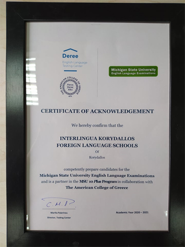 Τα φροντιστήρια Ξένων Γλωσσών, Πληροφορικής και Μελέτης INTERLINGUA – INTERED ΚΟΡΥΔΑΛΛΟΥ, ιδρύθηκαν το 2000. 22 χρόνια παρουσίας, με περισσότερους από 8000 ικανοποιημένους σπουδαστές, πάνω από 6000 πιστοποιήσεις σε ξένες γλώσσες και πληροφορική! Τα παιδιά μπορούν να παρακολουθήσουν μαθήματα Αγγλικών, Γαλλικών, Γερμανικών, Ισπανικών, Ιαπωνικών, Ρώσικων, Ρομποτικής και STEM Education καθώς και Σχολική Μελέτη Δημοτικού και Γυμνασίου. Οι ενήλικες και φοιτητές παρακολουθούν σε αποκλειστικά ταχύρρυθμα τμήματα ενηλίκων (ή ιδιαίτερα) Αγγλικά, Γαλλικά, Ισπανικά, Ιταλικά, Γερμανικά, Ιαπωνικά, Ρώσικα και μαθήματα πληροφορικής για πιστοποιήσεις ΑΣΕΠ, ECDL, CAMBRIDGE Βασικού και Προχωρημένου Επιπέδου. Επιδοτούμενα προγράμματα για ανέργους προσφέρονται μέσω voucher, ως μέλος του Δικτύου vriskopraktiki.gr Καινοτομία τα ΥΒΡΙΔΙΚΑ ΜΑΘΗΜΑΤΑ της INTERLINGUA – INTERED ΚΟΡΥΔΑΛΛΟΥ, για την ευελιξία και την ποιότητα με την οποία παρέχονται από το 2020. Είτε παιδί, είτε ενήλικας έχει τη δυνατότητα να παρακολουθεί σε φυσική τάξη ή/και να εναλλάσσεται σε διαδικτυακή αίθουσα ανάλογα με τις επιθυμίες και τις ανάγκες του. Γνωρίζουμε σε βάθος, αξιολογούμε και επενδύουμε συνεχώς σε νέες τεχνολογίες εκπαίδευσης.