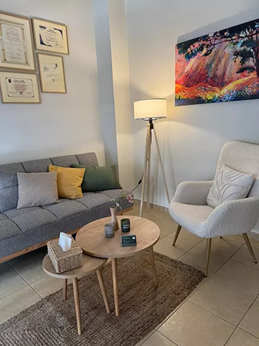Συμβουλευτική και Ψυχοθεραπεία Ενηλίκων και Εφήβων Συμβουλευτική Γονέων Άγχος – Στρες Κρίσεις Πανικού Κατάθλιψη Γενικευμένη Αγχώδης Διαταραχή Ιδεοψυχαναγκαστική Διαταραχή Κοινωνικό Άγχος Άγχος Υγείας Φοβίες Διαταραχές Σίτισης και Πρόσληψης Τροφής (Ανορεξία, Βουλιμία, Υπερφαγία) Διαταραχή της Σωματικής Εικόνας Προβλήματα Ελέγχου Θυμού Διαταραχές Ύπνου Συμβουλευτική Ζεύγους και Θεραπεία Σχέσεων Θλίψη και Πένθος Δυσκολίες Αυτοεκτίμησης και Αυτοεικόνας Διαχείριση Burnout και Επαγγελματικής Εξουθένωσης Διαχείριση Διαπροσωπικών Σχέσεων και Συγκρούσεων Ψυχολογική Υποστήριξη Ατόμων Τρίτης Ηλικίας Επαγγελματική Καθοδήγηση και Προσωπική Ανάπτυξη Ψυχοεκπαίδευση και Ενδυνάμωση Γονέων Συναισθηματική Ρύθμιση και Έλεγχος Παρορμήσεων Δυσκολίες Προσαρμογής και Αλλαγών Ζωής Διαχείριση Ψυχοσωματικών Συμπτωμάτων
