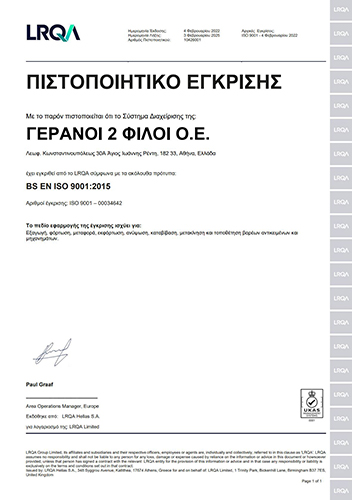 Η εταιρεία μας ιδρύθηκε το 1975 από τους ΚΟΥΡΟΥΚΕΧΑΓΙΑ ΝΙΚΟΛΑΟ και ΑΝΤΑΛΟΠΟΥΛΟ ΚΡΕΟΝΤΑ, με διακριτικό τίτλο ΓΕΡΑΝΟΙ ΟΙ ΔΥΟ ΦΙΛΟΙ, ΝΙΚΟΣ - ΚΡΕΩΝ.
