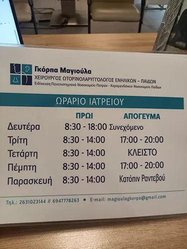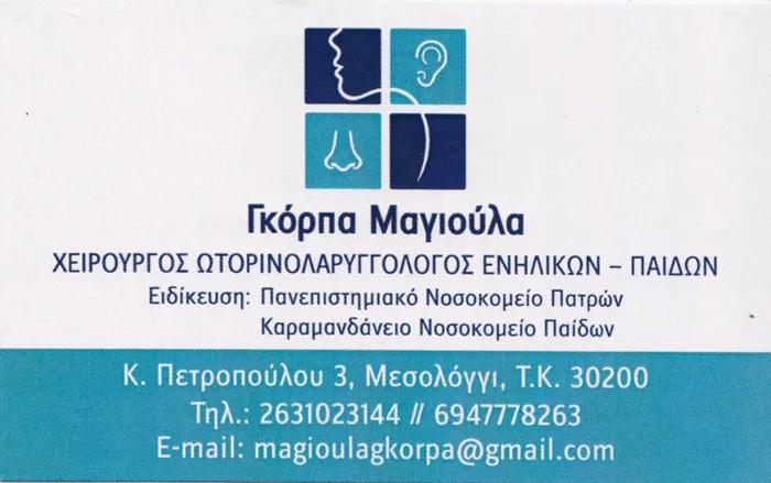 Στοιχεία Αναζήτησης: Ωρλ, Ιλιγγος, Βαρηκοϊα, Εμβοες, Αλλεργικη Ρινιτιδα