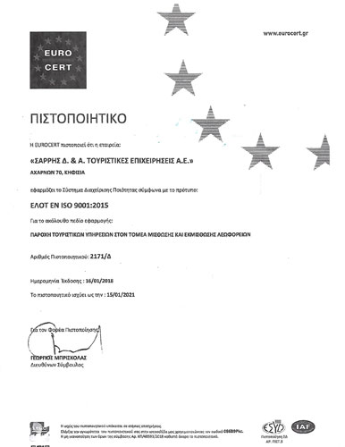 Η εταιρεία μας είναι σε θέση να προσφέρει μια ευρεία γκάμα χερσαίων μεταφορών για κάθε πιθανό αριθμό ατόμων. Το εξειδικευμένο & έμπειρο προσωπικό μας (γραφείο κίνησης - οδηγοί - συνοδοί - τεχνική υποστήριξη) θα είναι πάντα δίπλα σας για να σας προσφέρουν ποιοτικές υπηρεσίες, όπως και να προσαρμόσουν στα μέτρα & τις απαιτήσεις σας το ιδανικότερο πακέτο μεταφοράς. Διαθέτουμε λεωφορεία όλων των θέσεων και κατηγοριών για να καλύψουν άρτια την κάθε μεταφορά. Ενδεικτικά ο στόλος μας περιλαμβάνει οχήματα 7 εώς 74 θέσεων. Όλα μας τα οχήματα πληρούν τις Ευρωπαϊκές προδιαγραφές ασφαλείας και ρύπων, διαθέτουν πλήρη κλιματισμό όπως επίσης σύγχρονα συστήματα ήχου/εικόνας και τηλεματικής. Η Σαρρής Δ. & Α. Α.Ε. συνεχίζοντας την προσπάθεια για συνεχή βελτίωση, πιστοποιήθηκε και με το πιο σύγχρονο ISO 9001:2015 του κλάδου για την διαχείριση της ποιότητας των υπηρεσιών μας.