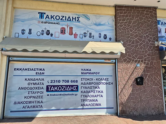 Η εταιρεία Τακοζίδης Γιώργος του Ηρακλή προσφέρει λύσεις για επαγγελματίες και ιδιώτες στον χώρο των φυσικών και τεχνιτών πετρωμάτων και των ειδών μνημείου. Σε εμάς θα βρείτε μεγάλη ποικιλία σε εξειδικευμένα υλικά, καθαριστικά και εργαλεία για μάρμαρο, γρανίτη και πέτρα. Στην έδρα μας επίσης θα βρείτε όλη την γκάμα ειδών μνημείου (κανδήλια, σταυροί, θυμιατά, ανθοδοχεία) της εταιρείας Θ. Βροχίδης ΑΒΕΕ (αποκλειστική αντιπροσωπεία Κεντρικής Μακεδονίας).