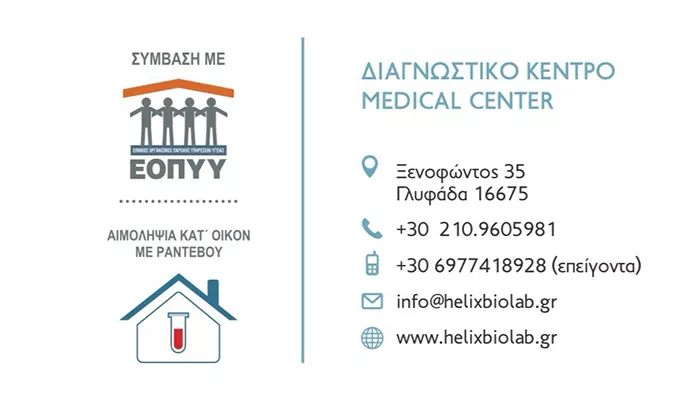 Το Μικροβιολογικό Εργαστήριο Helix Biolab, με περισσότερα από 20 χρόνια εμπειρίας στα Ιλίσια και 5 χρόνια στη Γλυφάδα, προσφέρει υψηλού επιπέδου διαγνωστικές υπηρεσίες με έμφαση στην ακρίβεια, την αξιοπιστία και την εξατομικευμένη φροντίδα. Με σύγχρονο εξοπλισμό και επιστημονική ομάδα που βρίσκεται πάντα στο πλευρό του ασθενούς, το εργαστήριο εξασφαλίζει άμεση και υπεύθυνη ενημέρωση για κάθε εξέταση. Στόχος μας είναι η ολοκληρωμένη υποστήριξη της υγείας με ανθρώπινη προσέγγιση και συνεχώς αναβαθμισμένες υπηρεσίες.