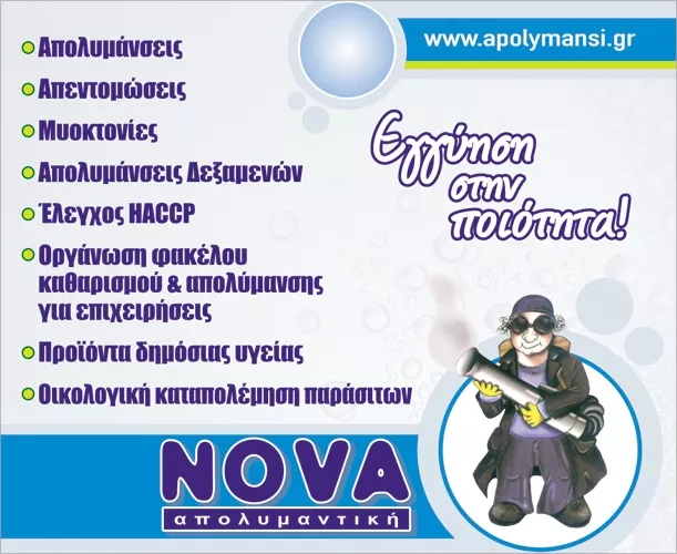 Η εταιρεία μας ιδρύθηκε το 1995 και αποτέλεσε σχεδόν εξαρχής την πιο αξιόπιστη λύση σε θέματα παρασιτοκτονίας στο Ηράκλειο. Γρήγορα φάνηκε ότι θα ξεπερνούσε τα σύνορα του νομού και έτσι επενδύοντας στις νέες τεχνολογίες είχε απήχηση σε όλη την Κρήτη και έτσι σήμερα έχουμε τη δυνατότητα να προσφέρουμε υπηρεσίες απεντόμωσης - μυοκτονίας σε όλη την Κρήτη και εξειδικευμένα προϊόντα παρασιτοκτονίας σε όλη την Ελλάδα. Εναρμονισμός με οδηγίες HACCP system και ISO: Ακολουθώντας τις οδηγίες της Ε.Ε., εναρμονίζουμε τις υπηρεσίες μας και αναπτύσσουμε μελέτες του HACCP system - ISO 9000 - ISO 14000. Οικολογικά προϊόντα καταπολέμησης εντόμων, τρωκτικών: Έχουμε τη δυνατότητα να καταπολεμήσουμε έντομα - τρωκτικά - ερπετά - διάφορα ζώα χωρίς χρήση χημικών ουσιών και καθαρά οικολογικά. Αποσμήσεις χώρων Βιοκαθαρισμός στρωμάτων - σαλονιών Μπορείτε να μας εμπιστευθείτε! Μπορείτε να ζητήσετε τη συμβουλή μας σε θέματα υγειονομικού ενδιαφέροντος!
