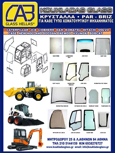 Η εταιρεία μας δραστηριοποιείται στην εισαγωγή και διάθεση παρμπρίζ και κρυστάλλων καμπίνας για κάθε τύπο χωματουργικού μηχανήματος και ειδικού οχήματος. Στην αποθήκη μας θα βρείτε περισσότερους από 1000 κωδικούς ετοιμοπαράδοτων κρυστάλλων, που πληρούν όλες τις διεθνείς πιστοποιήσεις ποιότητας και ασφάλειας.