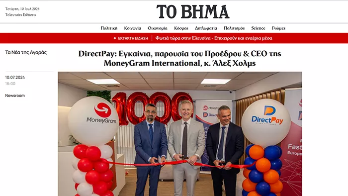 Από τις κύριες δραστηριότητες της DirectPay είναι η αντιπροσώπευση της αμερικανικής πολυεθνικής εταιρείας ηλεκτρονικής μεταφοράς χρημάτων MoneyGram, με παρουσία σε πάνω από 200 χώρες.