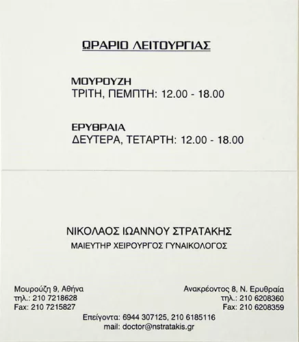 ΒΙΟΓΡΑΦΙΚΟ ΙΑΤΡΟΥ Γεννήθηκα στην Αθήνα, επεράτωσα τις γυμνασιακές μου σπουδές στο Κολλέγιο Αθηνών. Κατόπιν εισαγωγικών εξετάσεων, εισήχθην στην Ιατρική Σχολή του Πανεπιστημίου Αθηνών απ’ όπου και αποφοίτησα. Κατέχω πτυχίο Βιολογίας και από το Πανεπιστήμιο John Hopkins των ΗΠΑ. Ειδικεύθηκα στη Μαιευτική γυναικολογία στην Α’ Μαιευτική Γυναικολογική Κλινική του Πανεπιστημίου Αθηνών (Νοσοκομείο «Αλεξάνδρα») και μετεκπαιδεύτηκα στην μαιευτική και γυναικολογική υπερηχογραφία στην Ελλάδα και στο εξωτερικό. Παρέχω τις υπηρεσίες μου στο μαιευτήριο «ΙΑΣΩ».