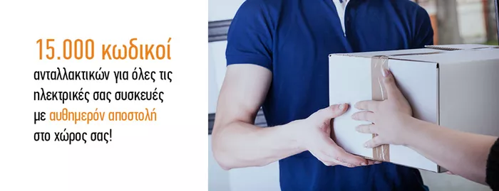 15.000 ανταλλακτικά για όλες τις ηλεκτρικές οικιακές συσκευές (πλυντήρια ρούχων και πιάτων, ψυγεία, κουζίνες, φούρνους μικροκυμάτων, ατμοσυστήματα, σκούπες κ.ά). Δίκτυο συνεργατών σε όλη την Ελλάδα με αυθημερόν αποστολές.