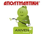 Η Axiven Pest Control αποτελεί μέλος του ομίλου AXIVEN Group of Companies και μεταφέρει τα 35 χρόνια εμπειρίας της ΑΠΟΛΥΜΑΝΤΙΚΗΣ στην εφαρμογή ολοκληρωμένων προγραμμάτων διαχείρισης υγιεινής. Κατέχει ηγετική θέση στην ελληνική αγορά στον τομέα παροχής υπηρεσιών σε επαγγελματικούς και οικιακούς χώρους. Εφαρμόζει ολοκληρωμένα προγράμματα Απεντόμωσης - Μυοκτονίας αλλά και ειδικές εφαρμογές υποκαπνισμού προϊόντων και αποθηκευτικών χώρων (πλοία, container, silo κ.ά.). Έδρα: Αθήνα (Χειμάρρας 3 - Ν.Χαλκηδόνα, τηλ.18220), Υποκαταστήματα: Θεσσαλονίκη (Νέας Μαγνησίας, 57007 τηλ. 2310785000, Πάτρα (Πανεπιστημίου 11- Πάτρα, τηλ. 2610434178), Μεσσηνία (Νέδοντος 128, Καλαμάτα, τηλ. 2721091909), Ζάκυνθος (Σαρακηνάδο 148, Ζάκυνθος, τηλ 2695063530)