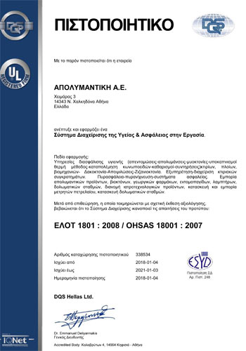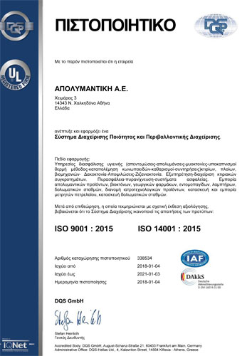 Απολυμάνσεις: Εφαρμογές απολύμανσης με σκοπό την καταπολέμηση βακτηρίων, μικροβίων, ιών και άλλων παθογόνων μικροοργανισμών.