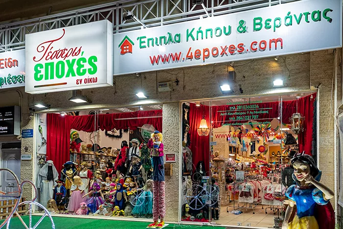 Η επιχείρηση ''4 ΕΠΟΧΕΣ ΕΝ ΟΙΚΩ'' ιδρύθηκε τον Σεπτέμβριο του 2001 στο Ηράκλειο Κρήτης. Όλα αυτά τα χρόνια προσπαθούμε να προσφέρουμε στους πελάτες μας τα καλύτερα και πιο ιδιαίτερα προϊόντα στο είδος μας. Βασικές μας αρχές είναι η Ποιότητα, η Ποικιλία, οι Προσιτές Τιμές, η Άψογη Εξυπηρέτηση. Σε εμάς θα βρείτε τις πιο επίκαιρες αποκριάτικες στολές και αξεσουάρ. Πάντα σε συνεργασία με τα καταστήματα "4 εποχές" της Αθήνας προσπαθούμε να εισάγουμε το μεγαλύτερο μέρος των προϊόντων μας με άμεσο όφελος το κέρδος των πελατών μας. Ελπίζουμε να απολαύσετε την περιήγηση στην ιστοσελίδα μας που συνεχώς ανανεώνεται με ότι καινούργιο προϊόν παραλαμβάνουμε και φυσικά θα χαρούμε πολύ να σας εξυπηρετήσουμε σε ένα από τα καταστήματα μας.