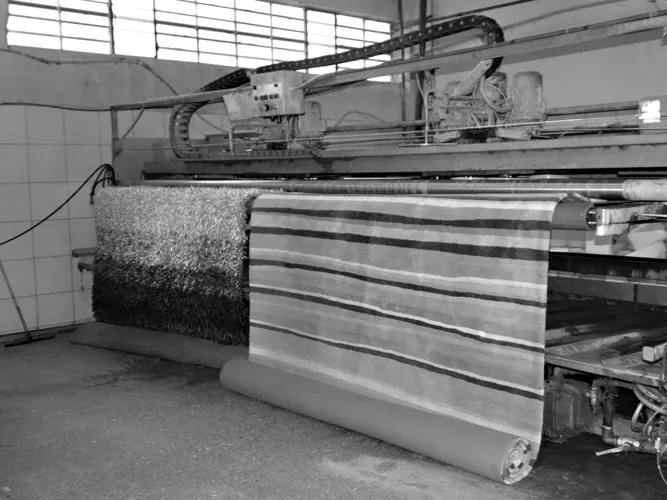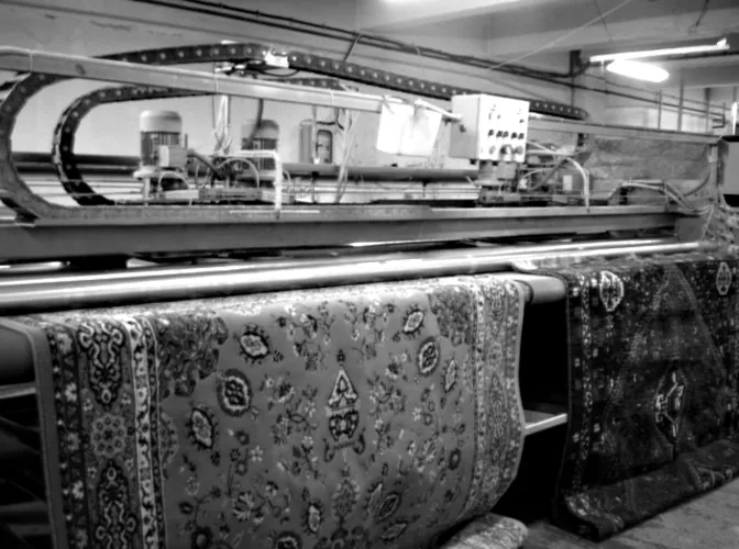 Το ξέβγαλμα γίνεται με το ειδικό φυγοκεντρικό μηχάνημα στυψίματος 1350 στροφών το λεπτό το οποίο αποβάλλει στη μεγαλύτερη ποσότητα νερού αφήνοντας το χαλί νωπό, απομακρύνοντας και το ελάχιστο ίχνος σκόνης.