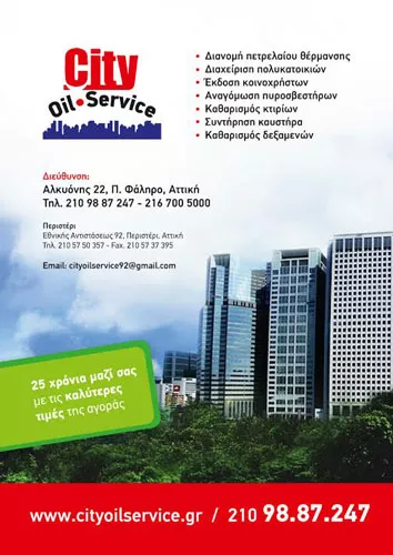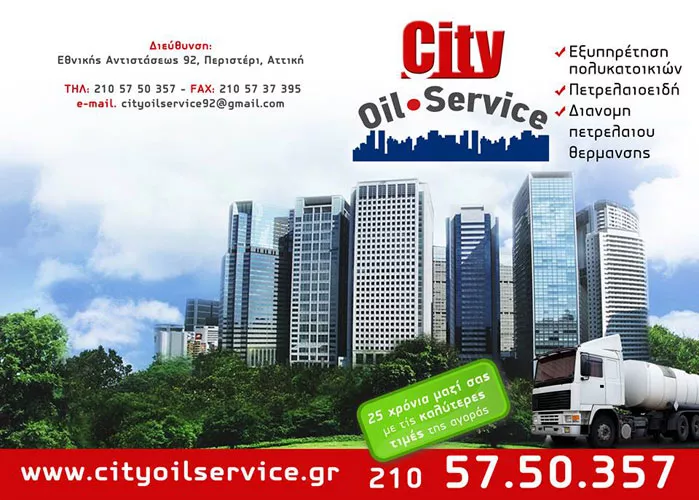 H εταιρεία μας City oil service δραστηριοποιείται στο χώρο της εξυπηρέτησης πολυκατοικιών και τη διανομή πετρελαίου θέρμανσης πάνω από 30 χρόνια με σκοπό την άριστη εξυπηρέτηση και συνεργασία με όλους τους πελάτες της. Με τις καλύτερες τιμές της αγοράς με άριστη ποιότητα και εγγύηση.