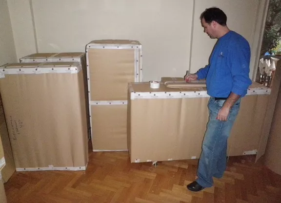 After unpacking we collect and transfer for recycling all packing materials.