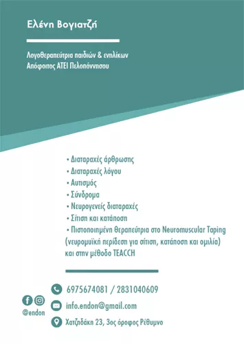 Η κυρία Ελένη, είναι μια εξαιρετική λογοθεραπεύτρια με βαθειά γνώση στο αντικείμενό της, υπομονή και πραγματικό ενδιαφέρον για τους θεραπευόμενούς της. Τη συνιστώ ανεπιφύλακτα για την επαγγελματικότητα και την αποτελεσματικότητά της.