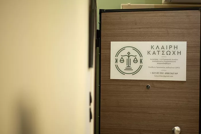 Η δικηγόρος Κατσώχη Κλαίρη διατηρεί σύγχρονο δικηγορικό γραφείο στο κέντρο της πόλης της Λάρισας επί της οδού Παπαναστασίου 70. Είναι απόφοιτος της Νομικής Σχολής του Δημοκρίτειου Πανεπιστημίου Θράκης, κάτοχος μεταπτυχιακού τίτλου με ειδίκευση στο Εμπορικό Δίκαιο και το Δίκαιο της Οικονομίας των Επιχειρήσεων του University of Nicosia. Παρέχει πλήρη δικαστική, εξωδικαστική και συμβουλευτική καθοδήγηση και υποστήριξη για την ανεύρεση της πιο αποτελεσματικής και οικονομικά συμφέρουσας λύσης, με εγγύηση ταχείας και επιτυχούς διεκπεραίωσης κάθε υπόθεσης εντός και εκτός Λάρισας. Ειδικεύεται σε θέματα Κτηματολογικού Δικαίου (Κτηματολογικές Ενστάσεις- Αγωγές), Ηλεκτρονικού εμπορίου (κατοχύρωση εμπορικού σήματος, Όροι Χρήσης Ιστοσελίδων, Νομική Υποστήριξη σε Επιχειρήσεις) και Δικαίου Προστασίαςτων προσωπικών δεδομένων (DPO).Επίσης στους τομείς εξειδίκευσης του γραφείου εντάσσεται και το δίκαιο αλλοδαπών ( άδεια διαμονής, πολιτογράφηση. Επίσης, παρέχονται υπηρεσίες εξειδικευμένων μεταφράσεων και νομικών κειμένων από και προς την αγγλική και γερμανική γλώσσα. Παρέχει υπηρεσίες Διαμεσολάβησης (διεξαγωγή Υποχρεωτικής Αρχικής Συνεδρίας [Υ.Α.Σ]) με εξειδίκευση στις διαφορές κτηματολογίου (Κτηματολογικός Διαμεσολαβητής), ενώ ταυτόχρονα παρέχει νομικές υπηρεσίες σε ό,τι έχει να κάνει με Κτηματομεσιτικές συναλλαγές (Αγοραπωλησίες ακινήτων, Έλεγχος τίτλων, Μισθώσεις ακινήτων, Συντονισμός Συμβολαιογράφων, Πολιτικών Μηχανικών, Κτηματομεσιτών). Τέλος, ασχολείται με τη ρύθμιση χρεών μέσω εξωδικαστικού μηχανισμού, αλλά και απευθείας συνεννόησης/διαμεσολάβησης με τις τράπεζες για τη ρύθμιση οφειλών που δεν κατέστη εφικτό να ρυθμιστούν μέσω εξωδικαστικού μηχανισμού.
